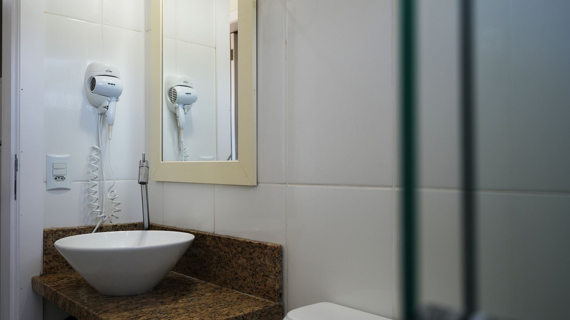 O apartamento é entregue com roupa de cama, porém sem toalhas de banho. Se necessário, podemos fornecer com o custo adicional de R$5,00 a peça. Nota importante: Esta categoria de apartamento se encontra no segundo pavimento do residencial, acessível somente por escadas.
