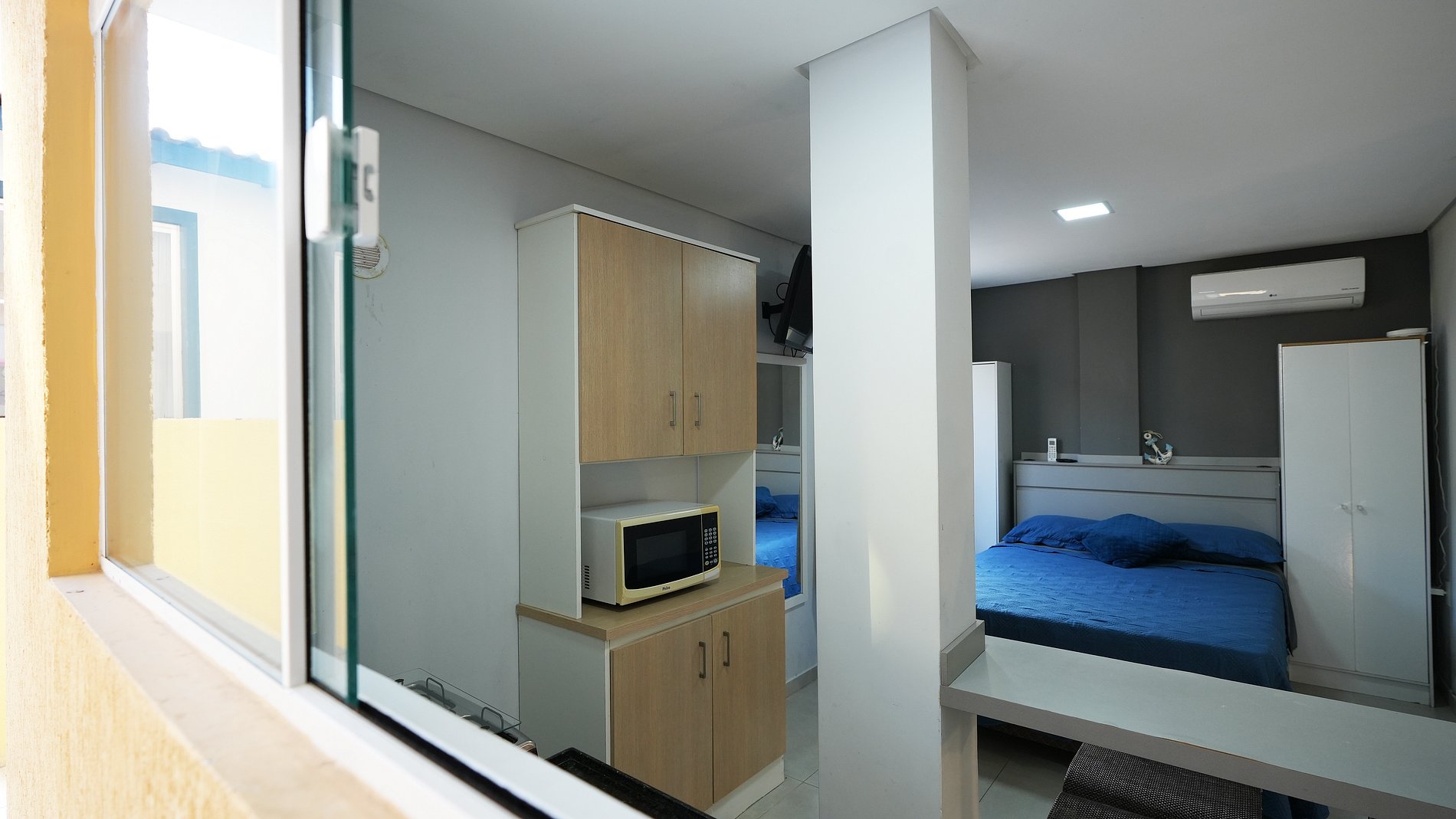 A kitnet do Residencial Dona Dina é perfeito para quem busca conforto e praticidade. Equipado com cama box e ar-condicionado, proporciona noites tranquilas. A cozinha compacta, mas bem equipada, facilita a preparação de refeições. Conta com Smart TV para relaxar assistindo à sua série favorita após um dia de praia. A localização, próximo às praias e ao comércio, trás conveniência e fácil acesso a todas as comodidades, tornando sua estadia prática e agradável.