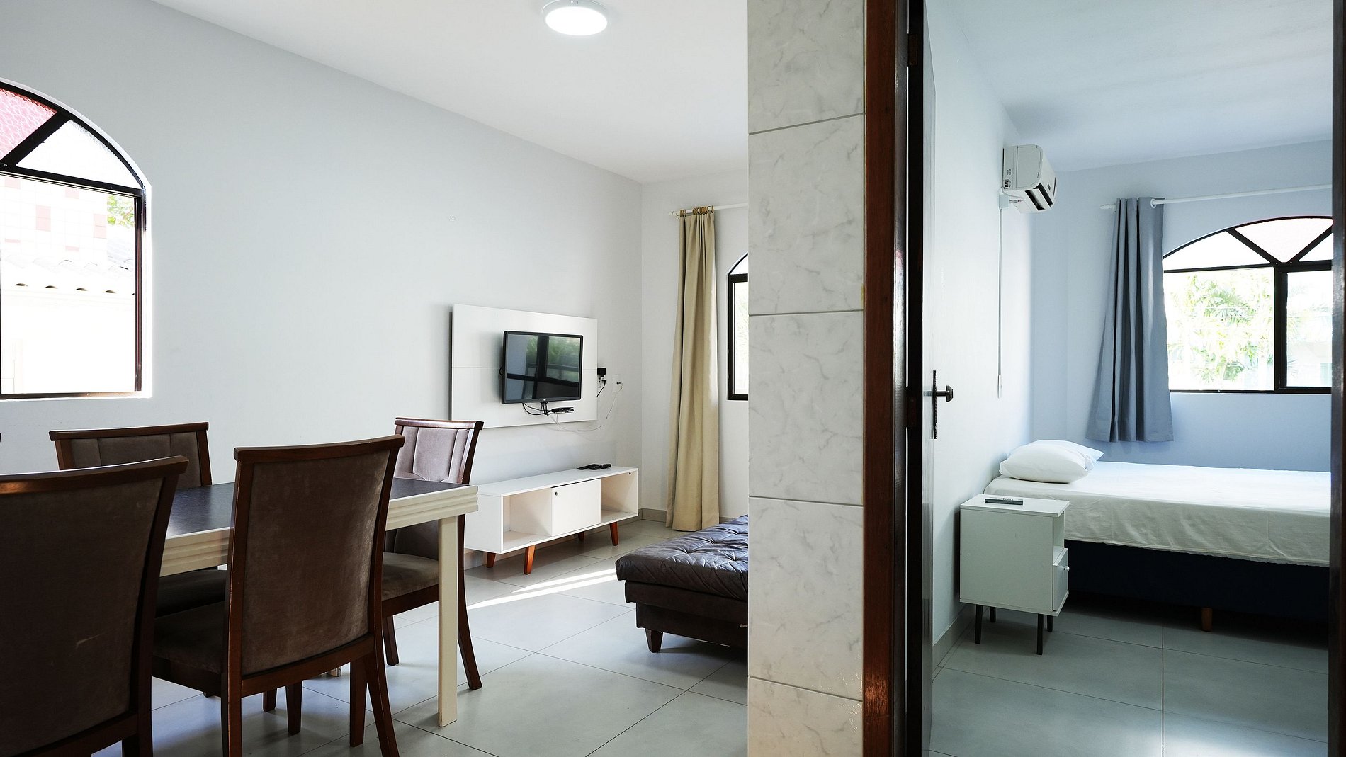 O apartamento conta também com acesso Wi-Fi de alta velocidade e smart TV, ideal para quem precisa se manter conectado durante a viagem.