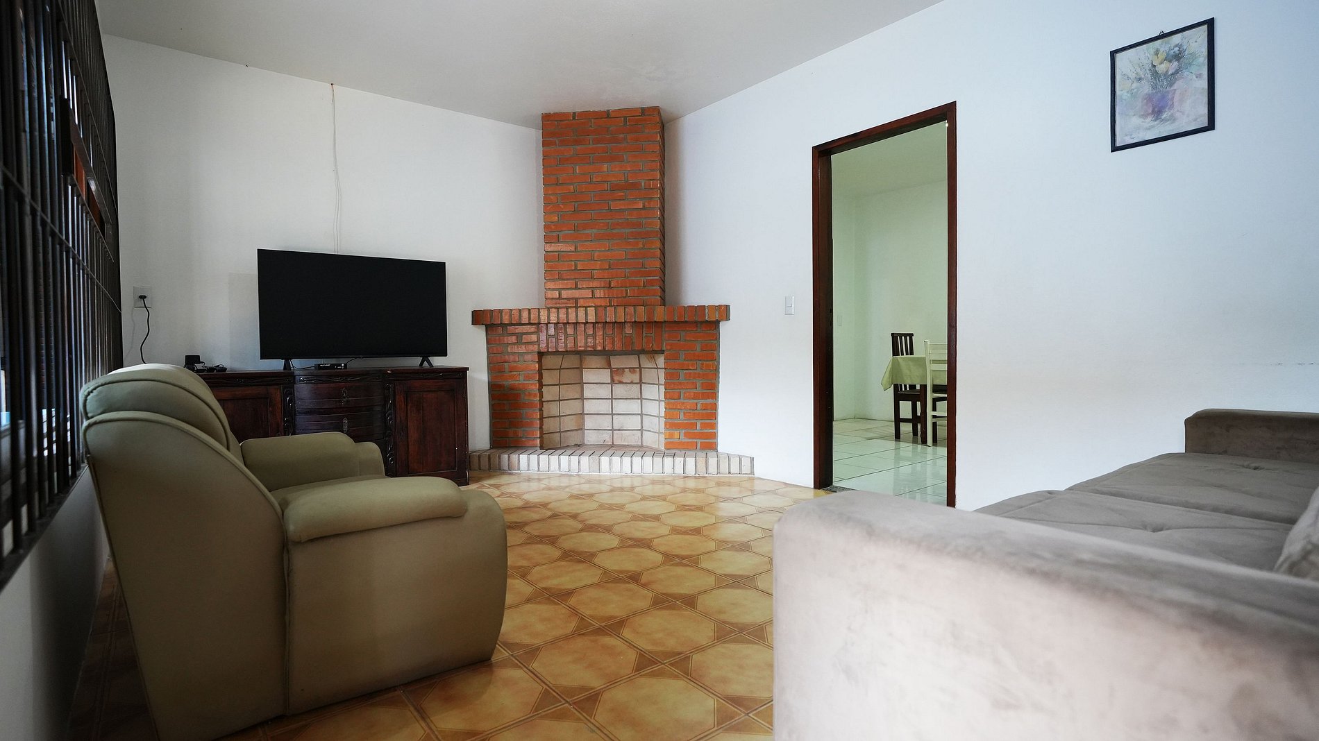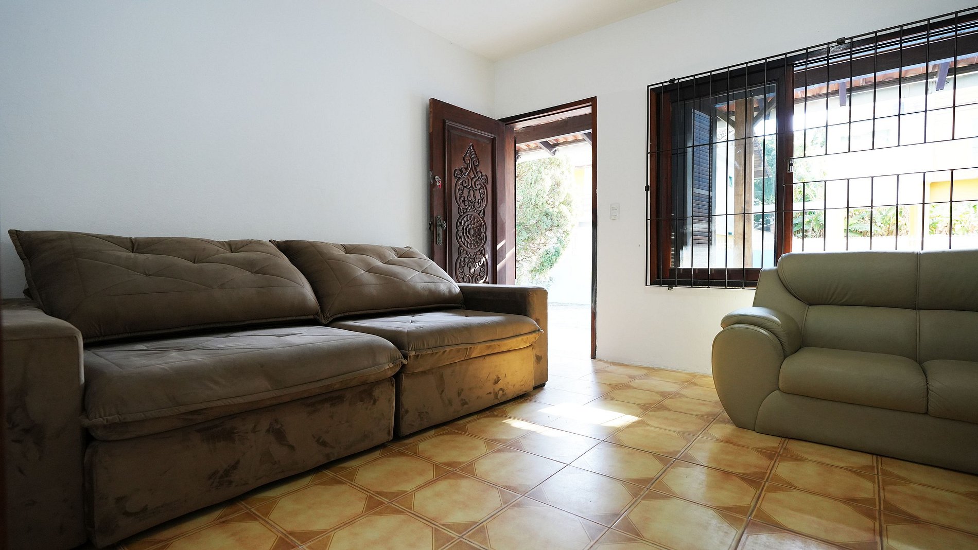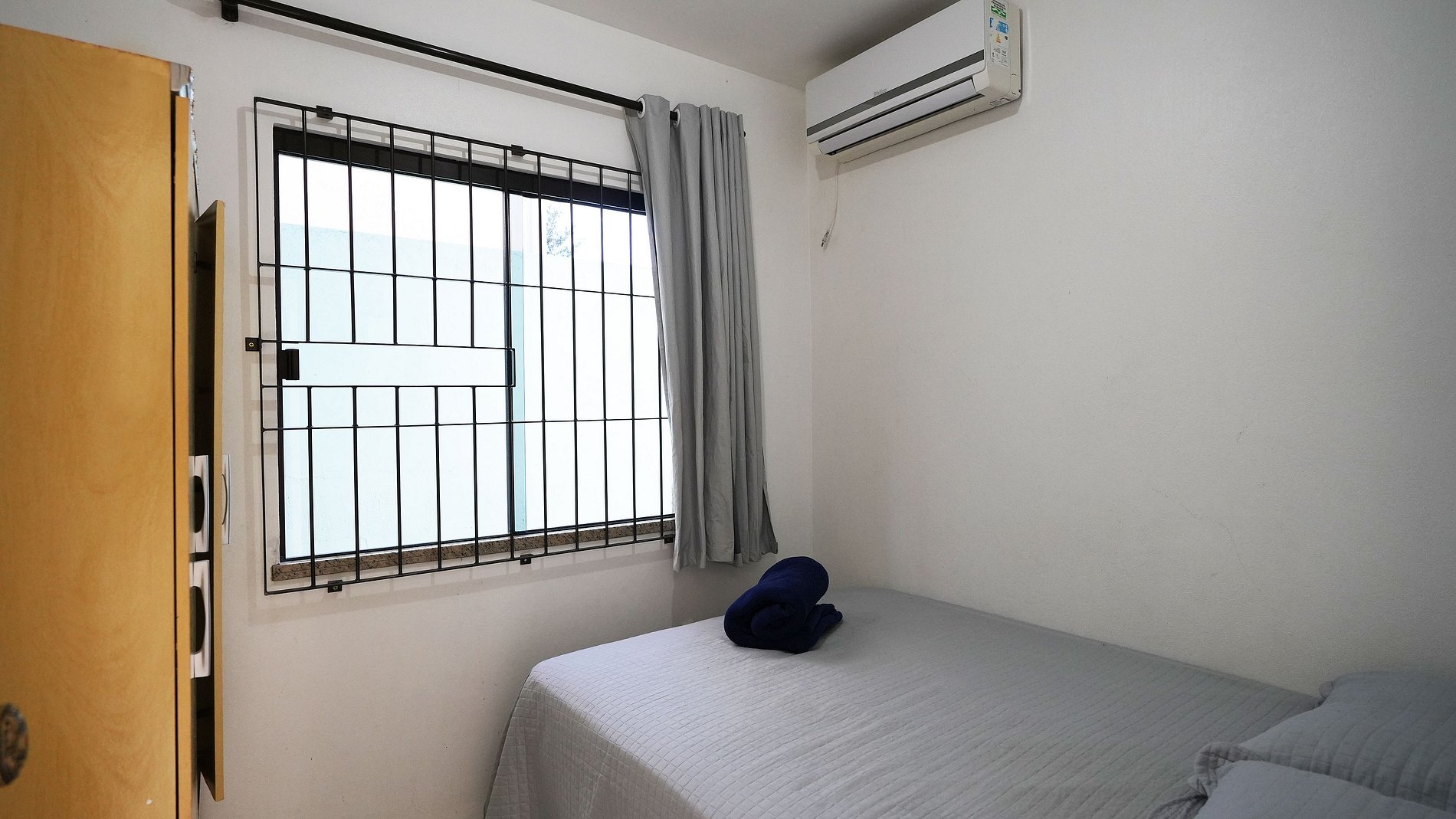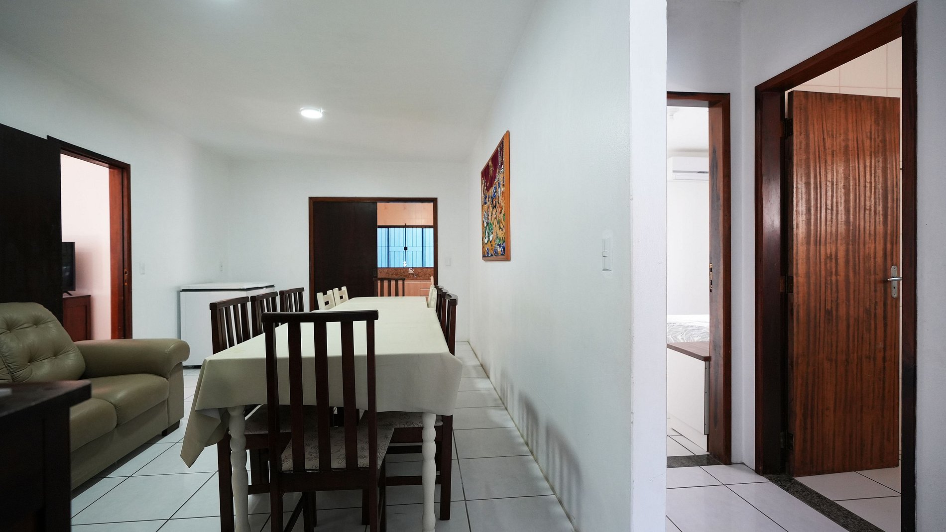 São 5 dormitórios sendo uma suíte, 3 quartos com cama de casal e 1 quarto com cama de casal e solteiro, todos com ar condicionado. Dois banheiros sociais, sala de estar e sala de jantar. Cozinha completa, fogão, forno, micro-ondas, freezer e utensílios (liquidificador, sanduicheira, panela de pressão, cafeteira e chaleira elétrica) Churrasqueira com mesa grande para confraternizações. Área de serviço com lavadora de roupas, tanque e varal externo. Máximo 15 pessoas contando com crianças.