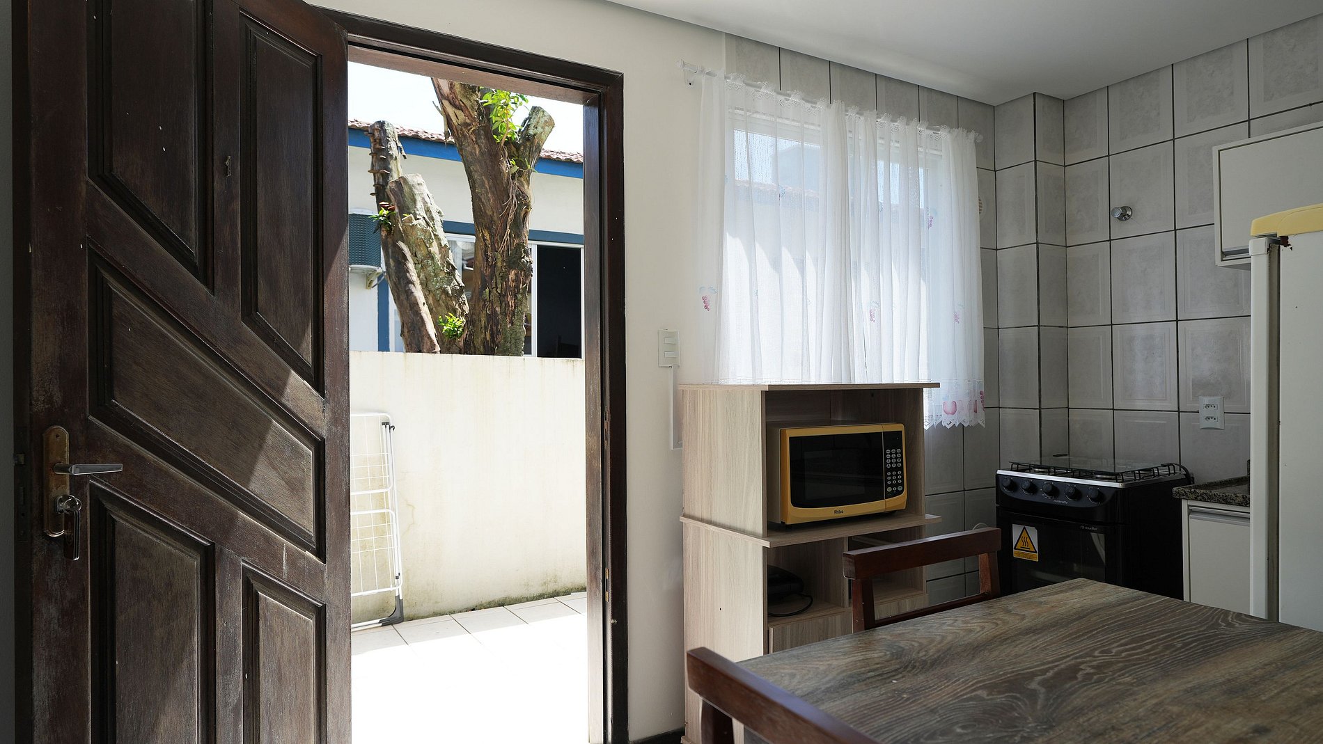 Embora este apartamento não tenha uma churrasqueira privativa, os hóspedes podem utilizar uma área comum equipada com churrasqueira, disponível para todos.