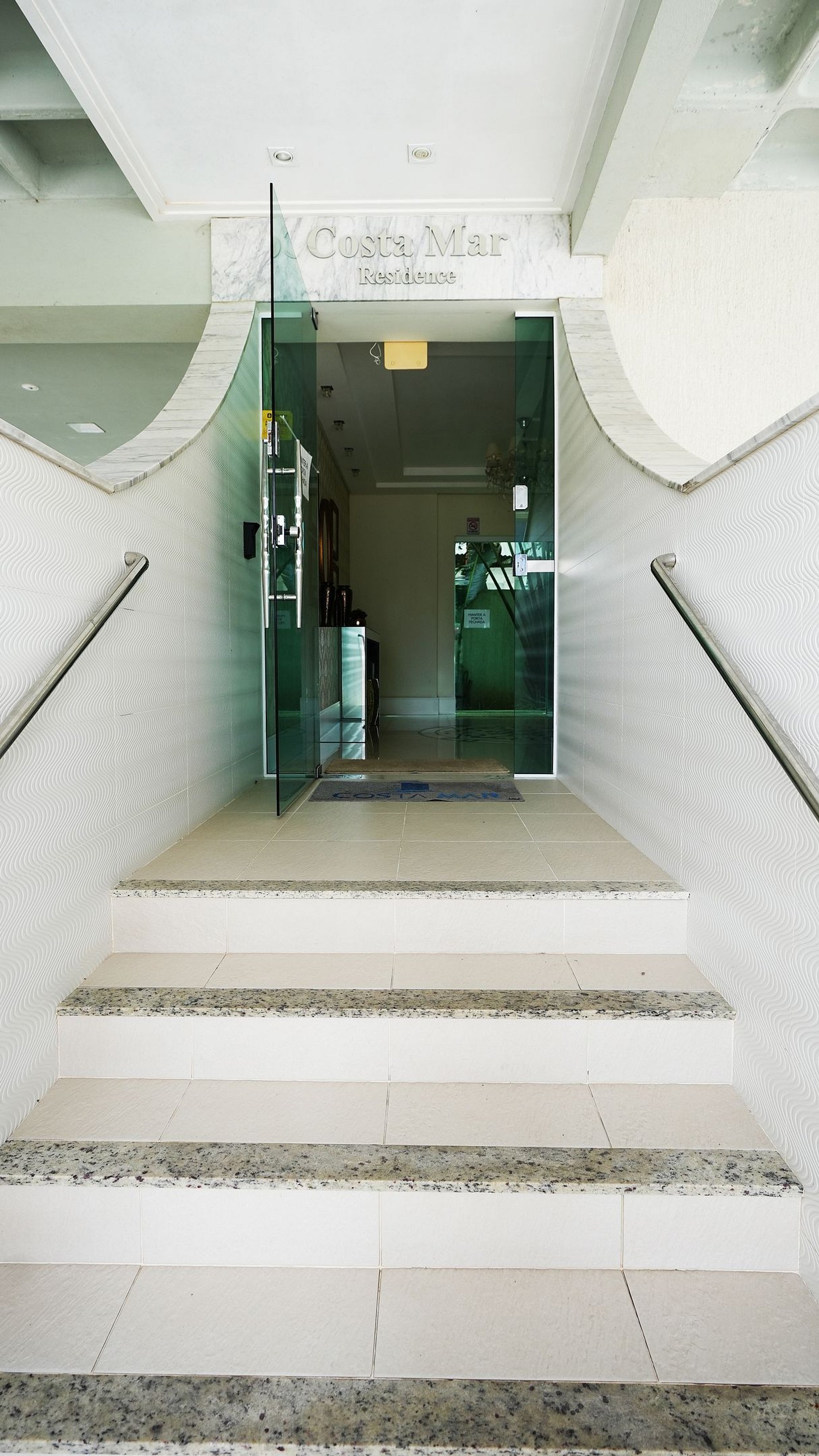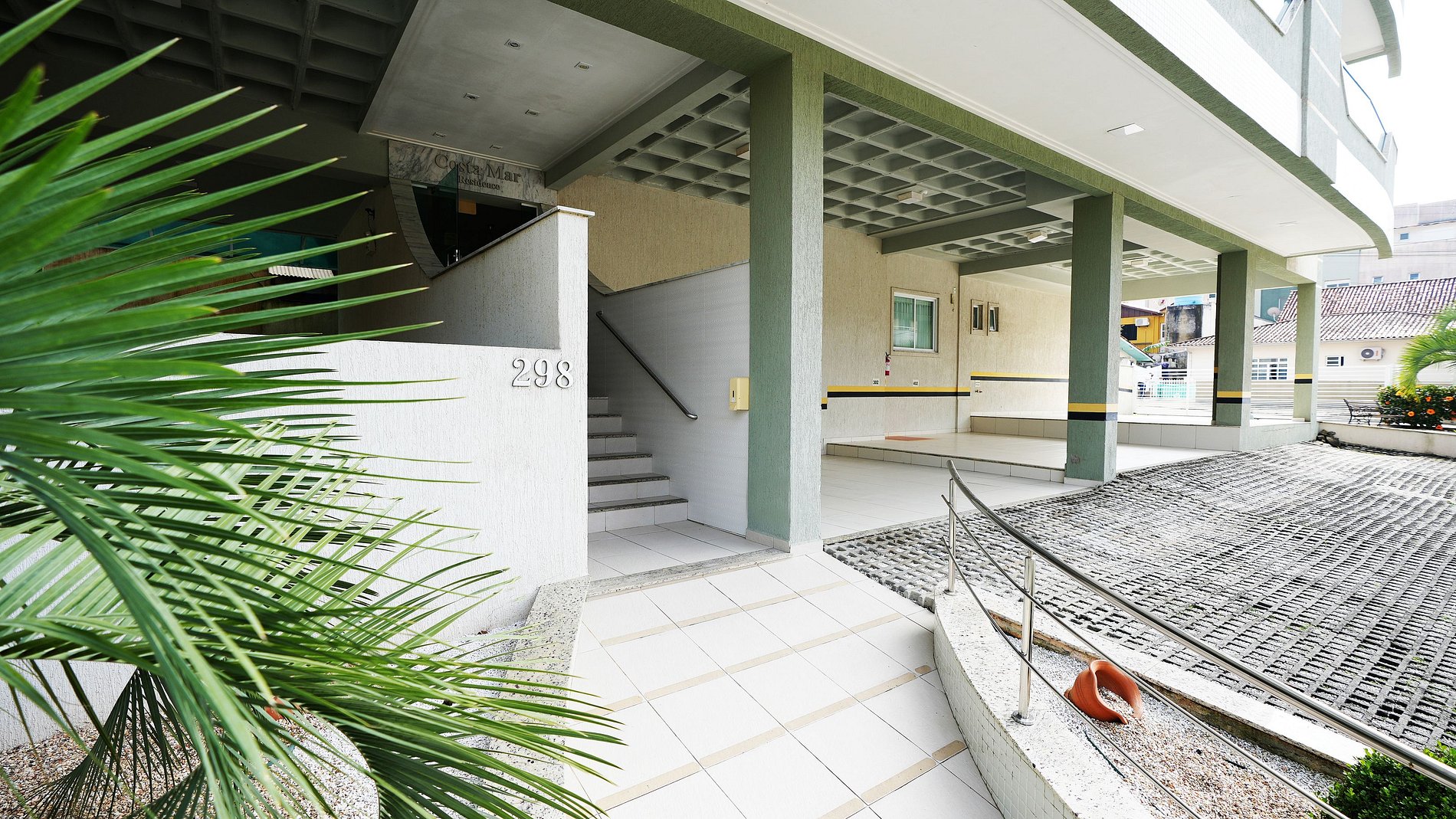 Este é um apartamento no último pavimento do Edifício Costa Mar, acessível por elevador ou escadas. É amplo e possui duas vagas de garagem, uma coberta e uma não coberta.